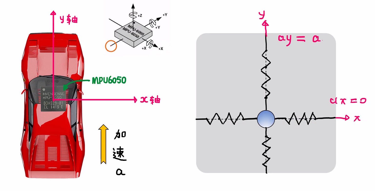 当小车向前行驶时,就向Y轴施加了一个水平的加速度力时,