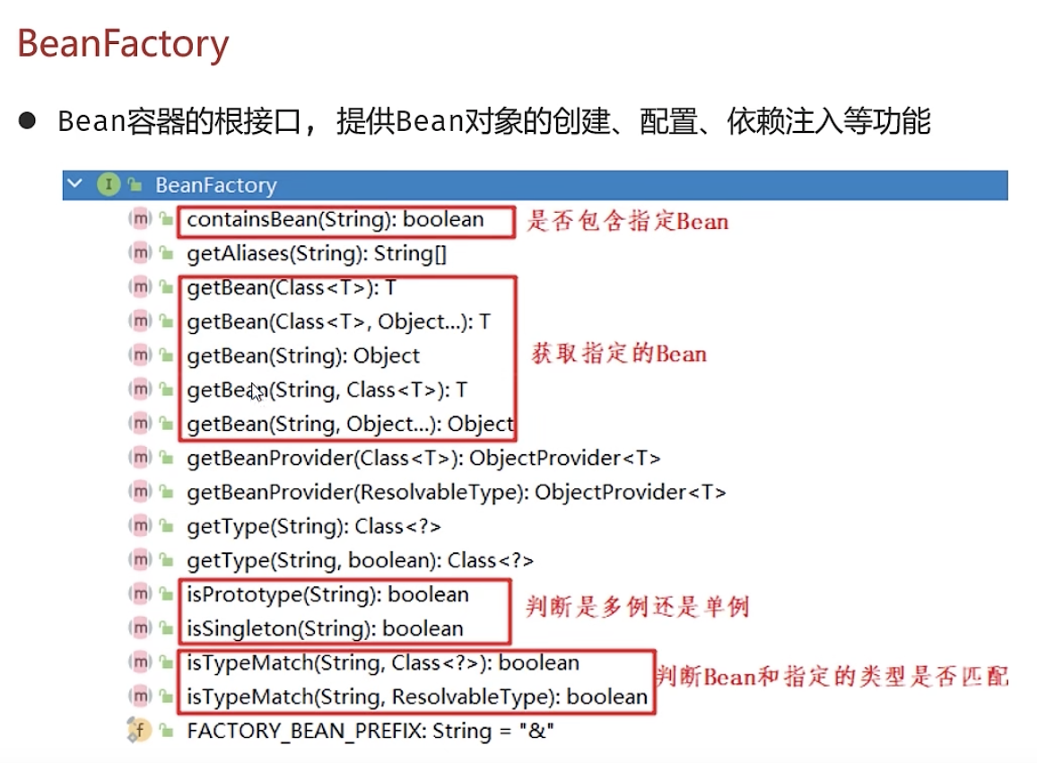 这里 getBean() 就是 BeanFactory 的本质能力。