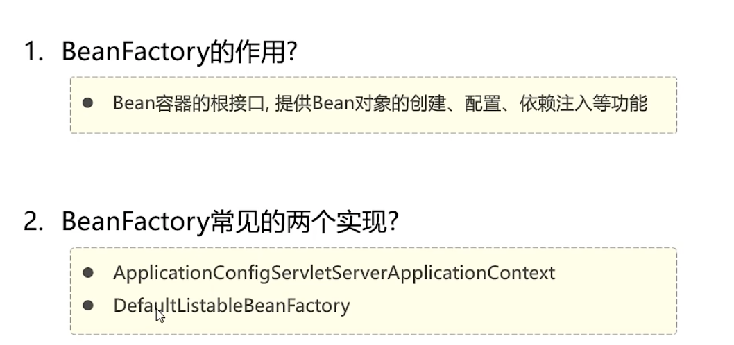 真正需要用某个 Bean 的时候 → 由 BeanFactory 创建对象并交给你