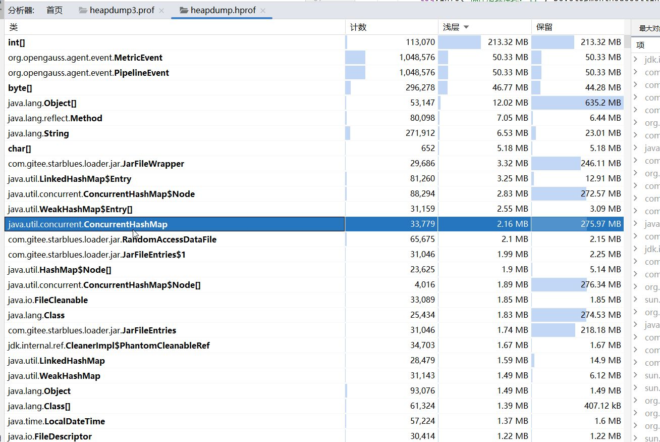 根据堆栈分析结果,我发现了一个严重的内存问题。主要内存占用来自插件框架的JAR文件处理和Agent事件系统。