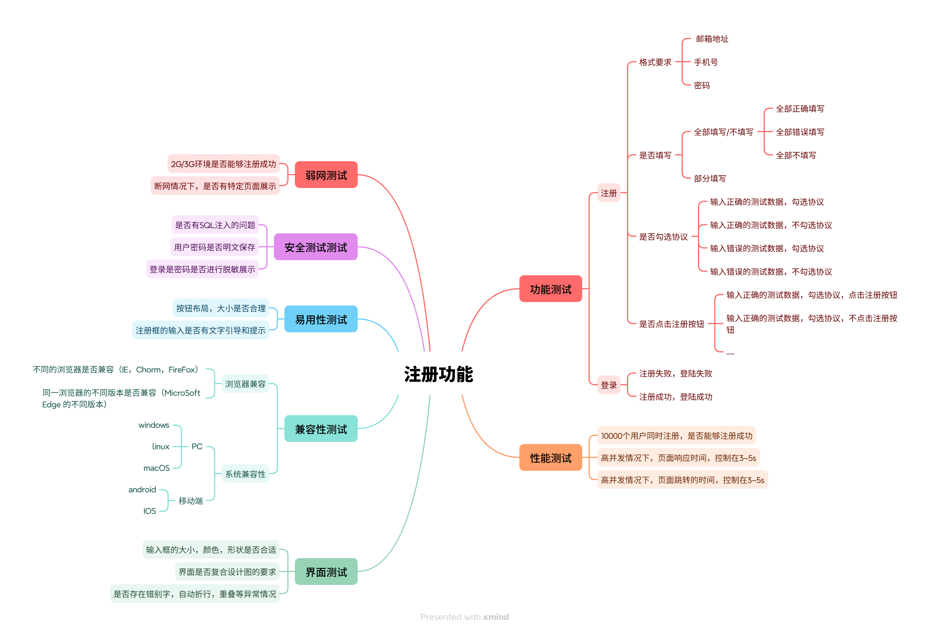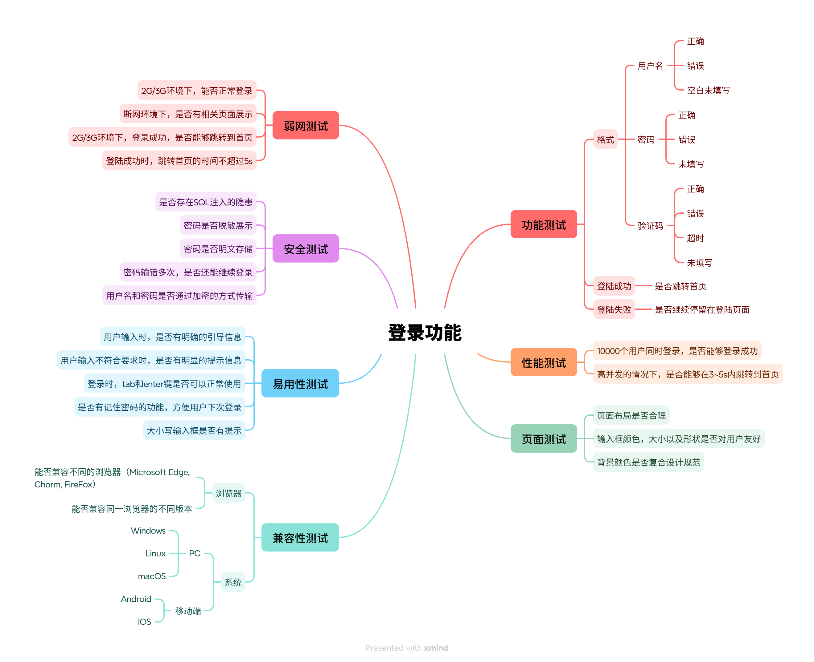 这是传统的测试用例的编写方式,敏捷模型中,也经常使用思维导图的方式来编写测试用例。