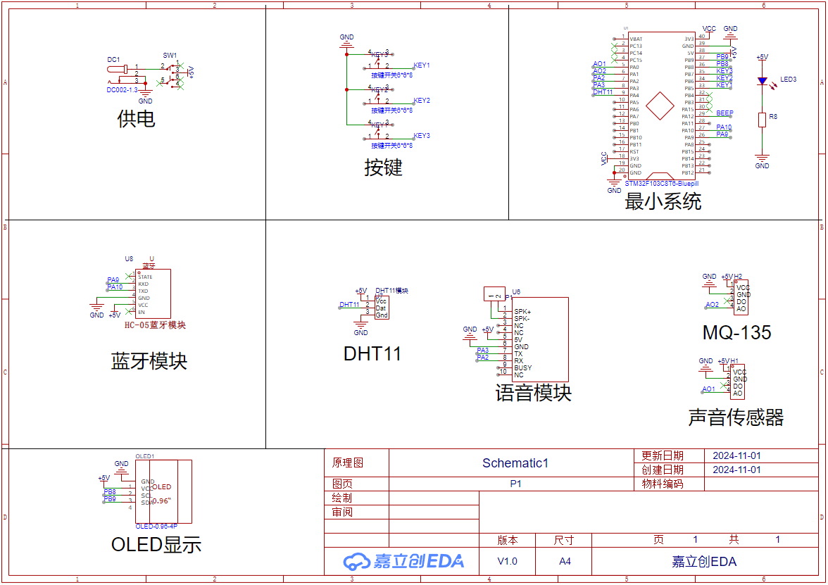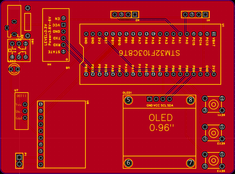 // TIM_PWM_Init(71,9999);stepmotor_init();Adc_Init();USART_Config();while(1){count++;if(res=='a'){OLED_Clear();set_flag=1;res=0;}else if(res=='b'){OLED_Clear();add_flag=1;res=0;}else if(res=='c'){OLED_Clear();dec_flag=1;res=0;}SOUND=Get_Adc_Average(1,10)*100/4096;MQ=Get_Adc_Average(0,10)*100/4096;DHT11_Read_Data(&temp,&humi);key_scan(1,0,0);OLED_ShowCH(0,0," Ӥ ");OLED_ShowCH(0,2," ¶ :");OLED_ShowNum(40,2,temp,2,16);OLED_ShowCH(0,4,"ʪ :");OLED_ShowNum(40,4,humi,2,16);OLED_ShowCH(64,2," :");OLED_ShowNum(104,2,SOUND,2,16);OLED_ShowCH(64,4," :");OLED_ShowNum(104,4,MQ,2,16);if( dec_flag==1 || res=='e'){dec_flag=0;count11++;if(count11>=5)count11=1;playsong(count11);res=0;}if( add_flag==1 || res=='d'){add_flag=0;if(count11>=2){count11--;}playsong(count11);res=0;}if(SOUND>=dec_TS){UsartPrintf(USART1,"С ڿ \r\n");}if(MQ>=max_LIGHT){UsartPrintf(USART1," \r\n");}if(temp>=max_wd){UsartPrintf(USART1," ¶ 쳣\r\n");}if(count>=100){count=0;UsartPrintf(USART1," ¶ :%d\r\n",temp);UsartPrintf(USART1,"ʪ :%d\r\n",humi);UsartPrintf(USART1," :%d\r\n",MQ);UsartPrintf(USART1," С:%d\r\n",SOUND);}}