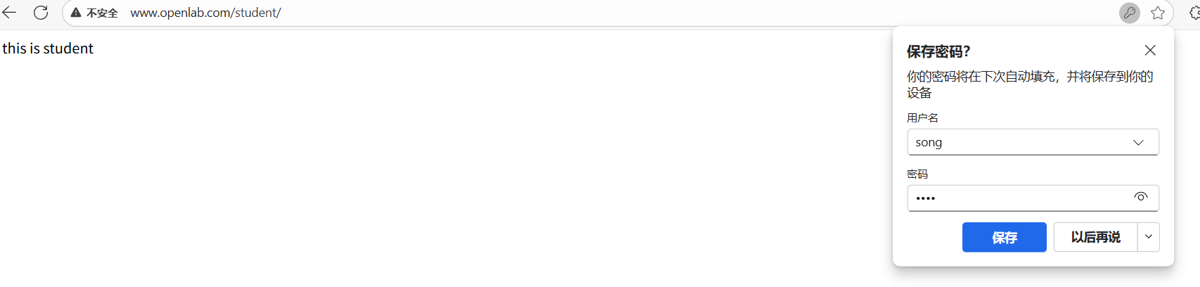 [root@localhost ~]# echo "this is student " > /www/openlab/student/index.html