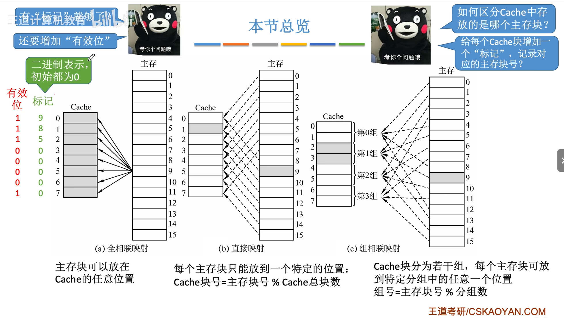 cache 与主存的核心映射方式有三种,核心结论是:直接映射、全相联映射、组相联映射,分别平衡命中率、硬件复杂度和访问速度。