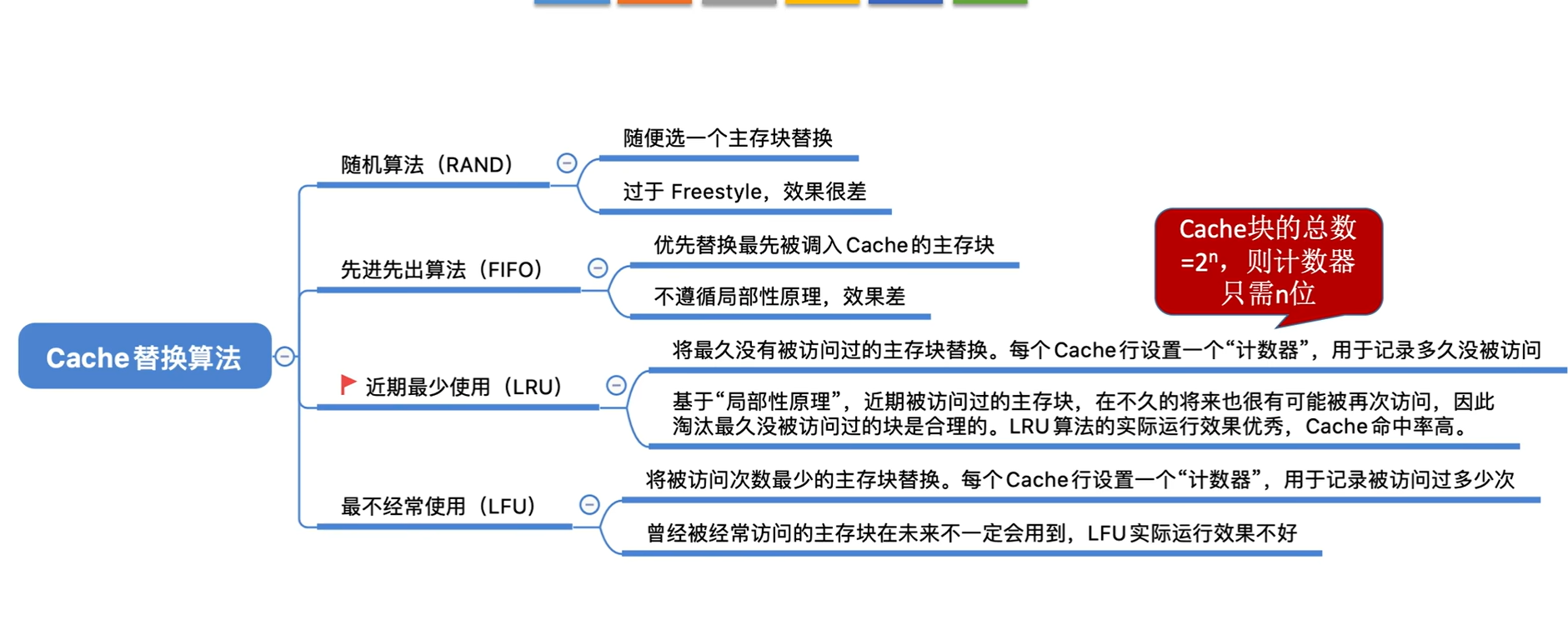 - 关键规则:若写入的地址已在 Cache 中(写命中):更新 Cache + 同步更新主存;若不在 Cache 中(写缺失):直接写入主存(通常配合 “非写分配”,不把主存块调入 Cache)。