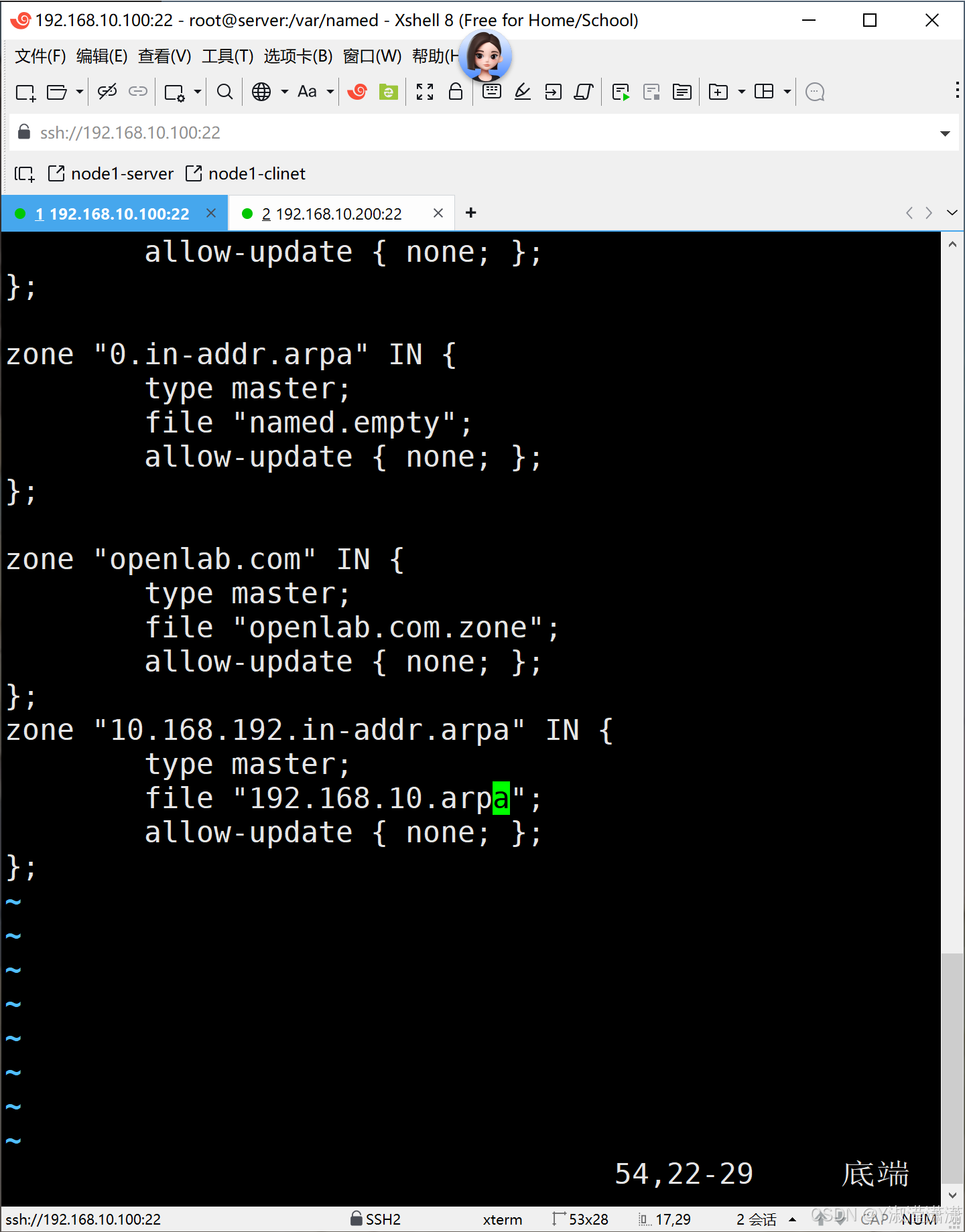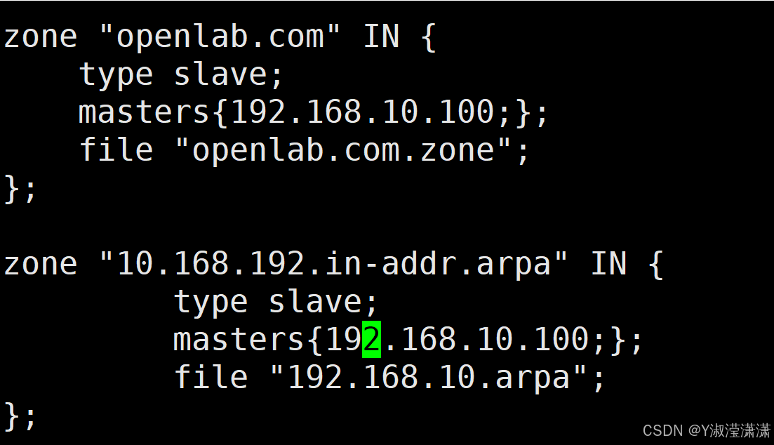 步骤一:修改声明文件/etc/named.rfc1912.zones,将正向和反向声明做转发处理,转发给从服务器