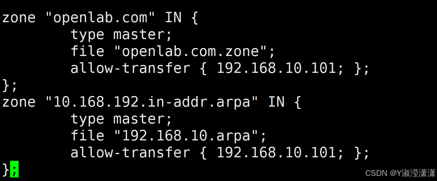 步骤二:添加反向解析声明 到named.rfc1912.zones