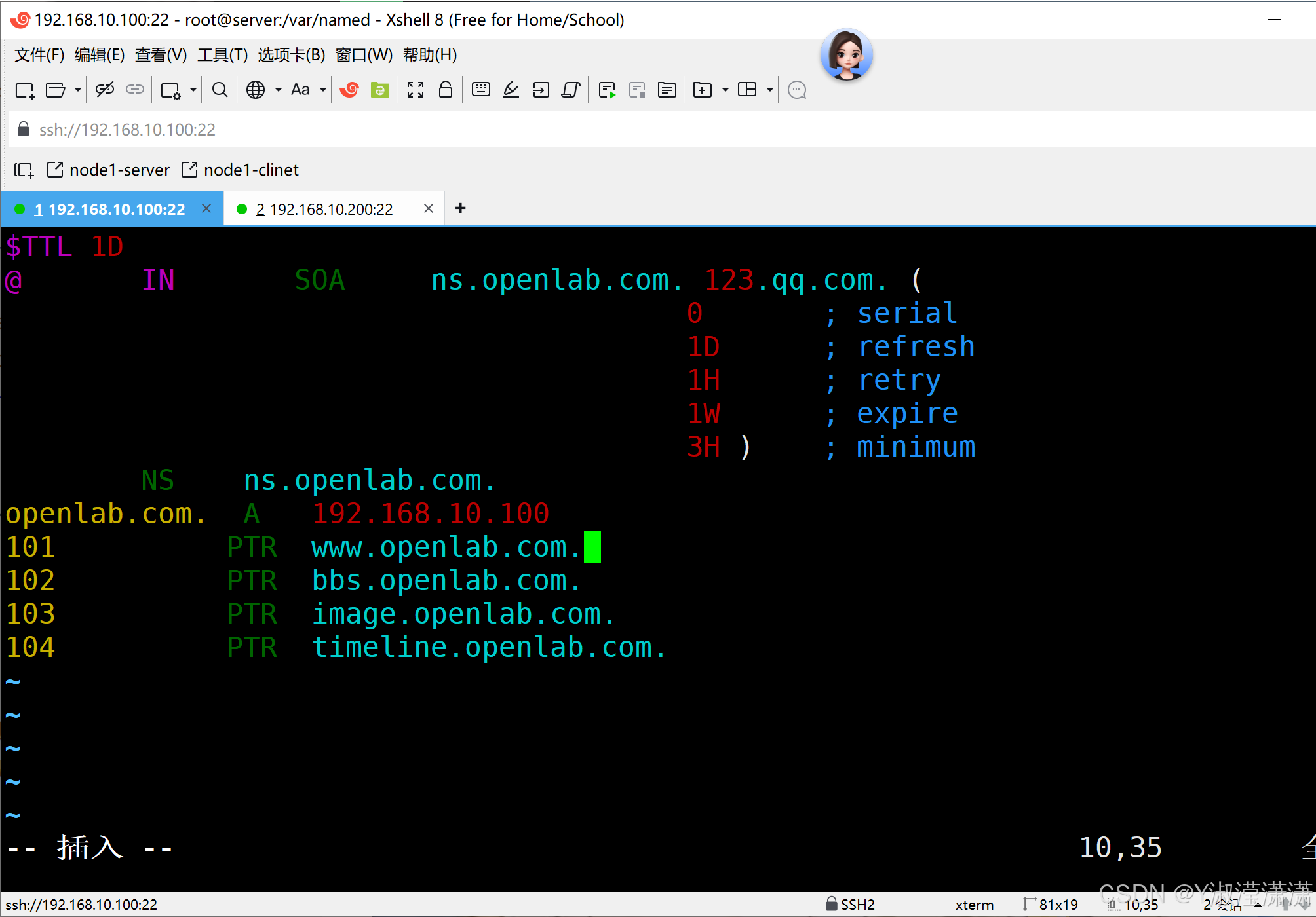 步骤四:创建区域数据文件/var/named/openlab.com.zone