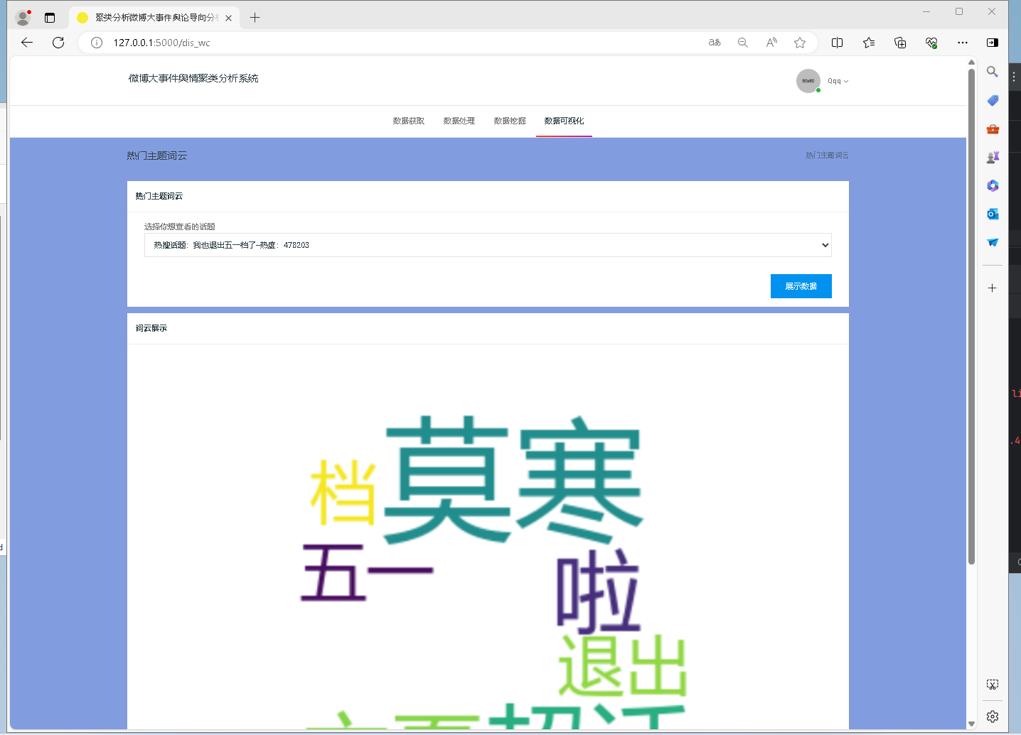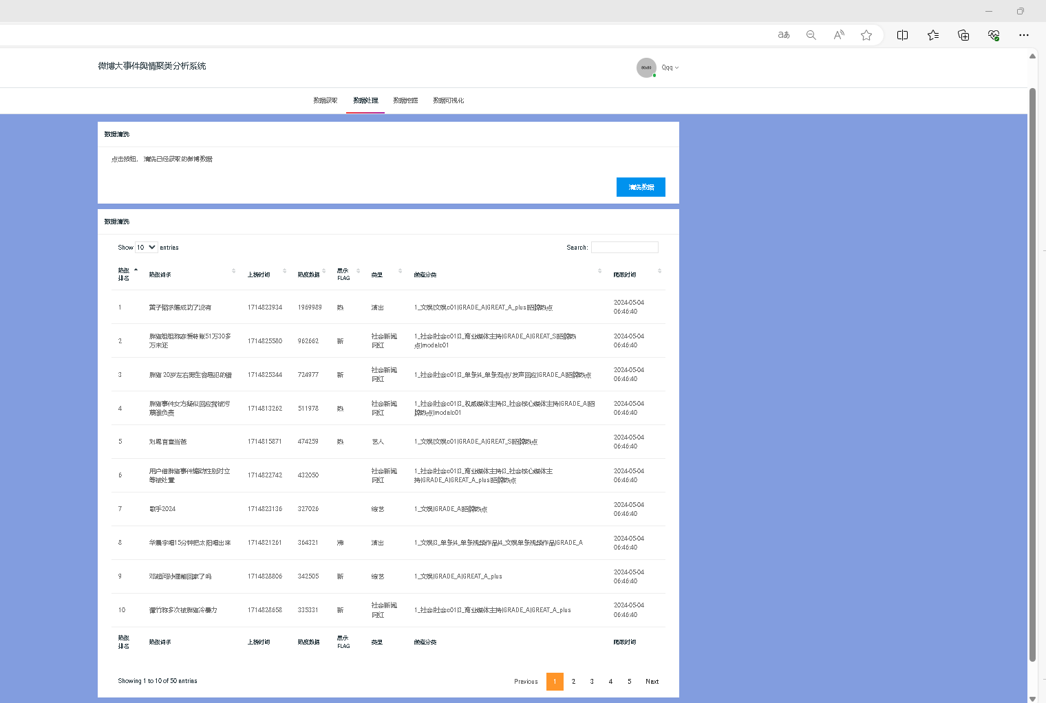 web网页开发,在线%聚类,微博,舆情%系统,基于python,pycharm,django,nlp,kmeans,mysql