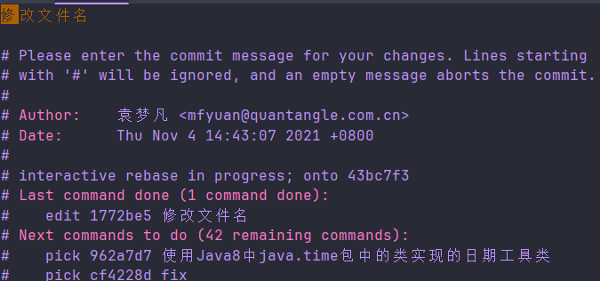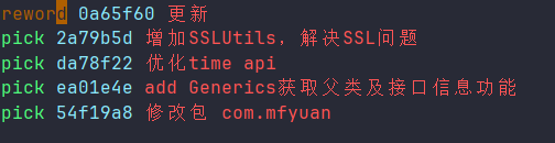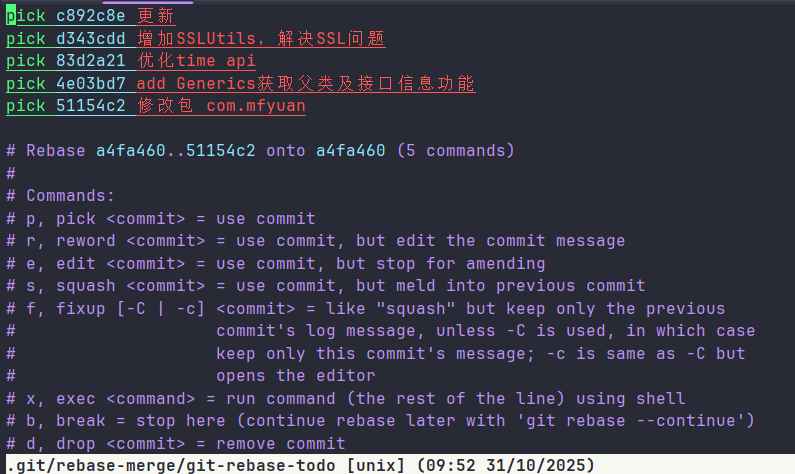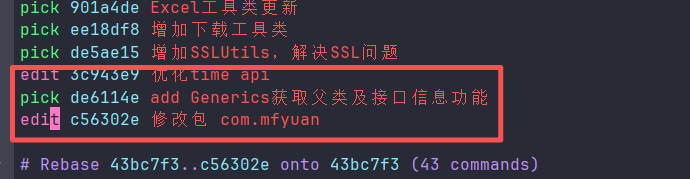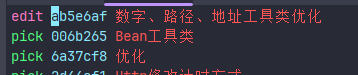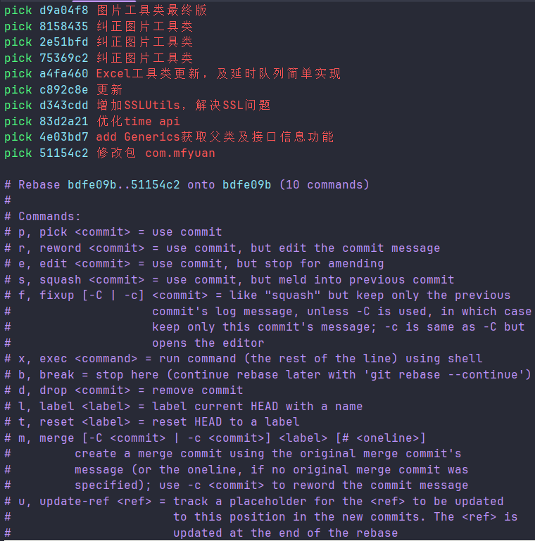 命令会展示该commit_hash 后的所有提交记录,并可以通过vim的方式去编辑他们。