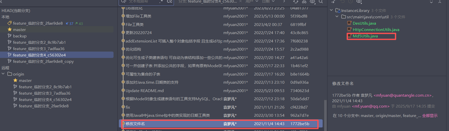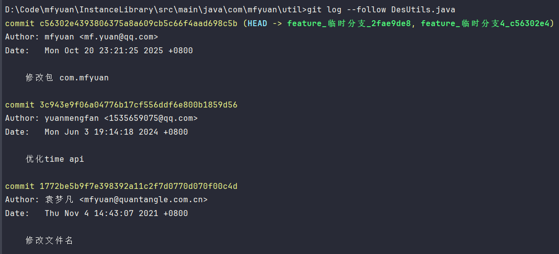 git log --follow <文件路径> 查看完整的修改记录包括移动及重命名