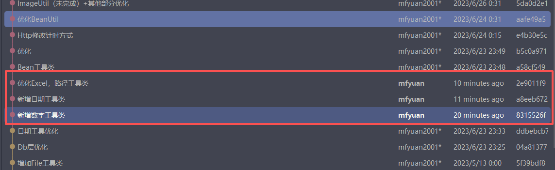 - 这里可以看见他把提交内容都合并到了一个里面,只有正常提交内容不在里面