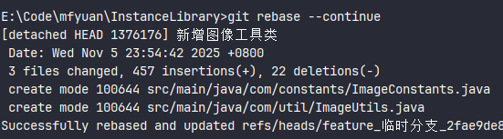 git rebase --continue结束这一次的提交并修改了提交信息,这里可以看到Image这两个文件不在本次提交中