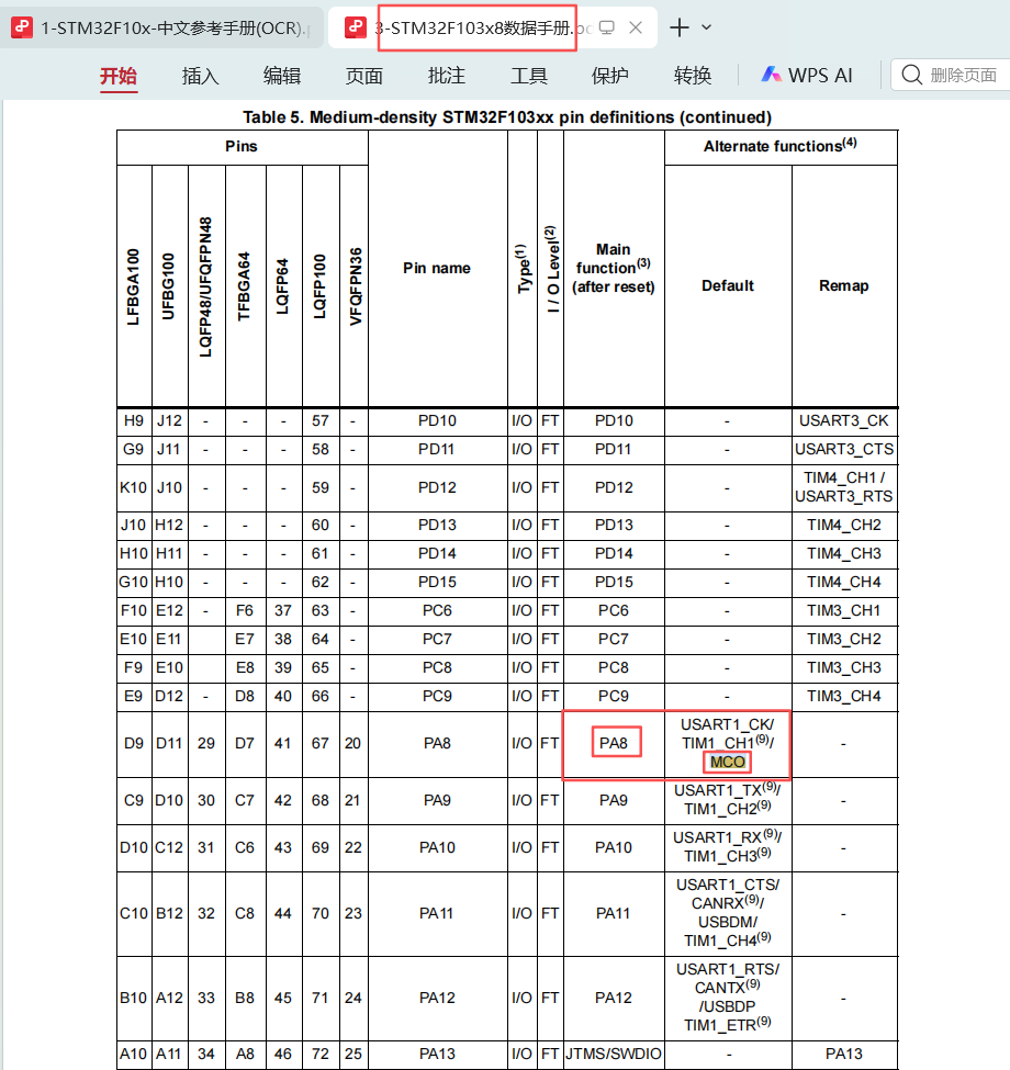这段代码把 PA8 置为复用推挽(AF_PP),这样内部 MCO 信号才能驱动到引脚。
