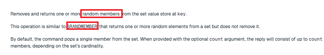此处,官方文档承诺了我们是随机删除。并且官方文档中提到,spop中使用到了“生成随机数”的方式进行实现。
