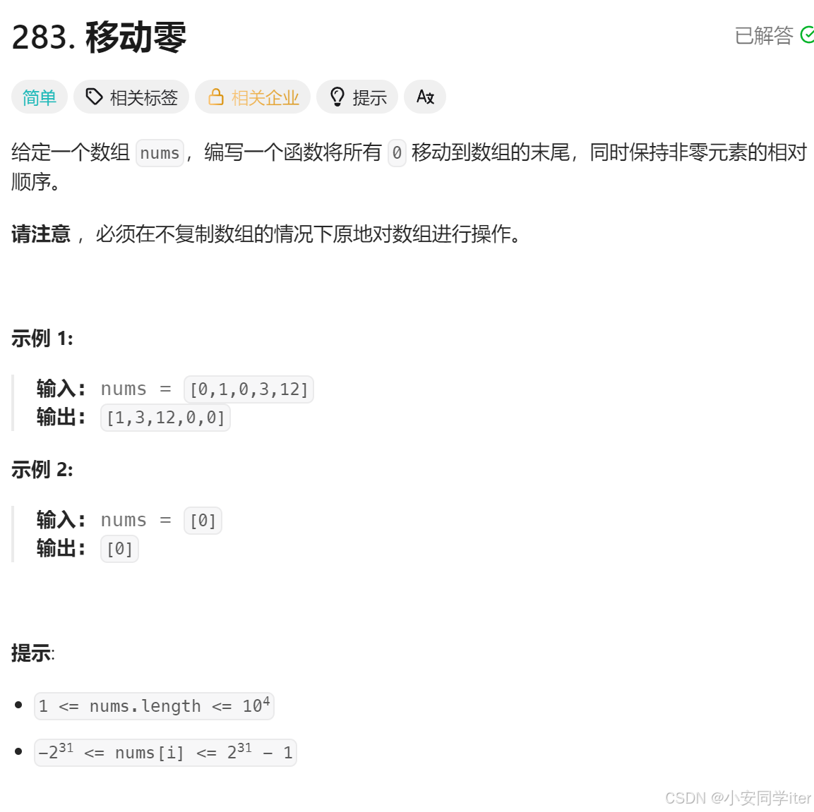 这题呢,题目要求不能去进行数组的复制,那直接不就说出来怎么去实现了吗,交换元素。