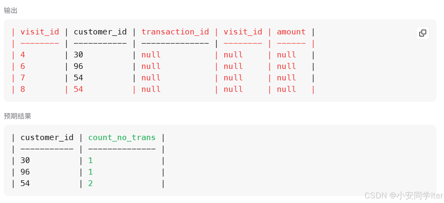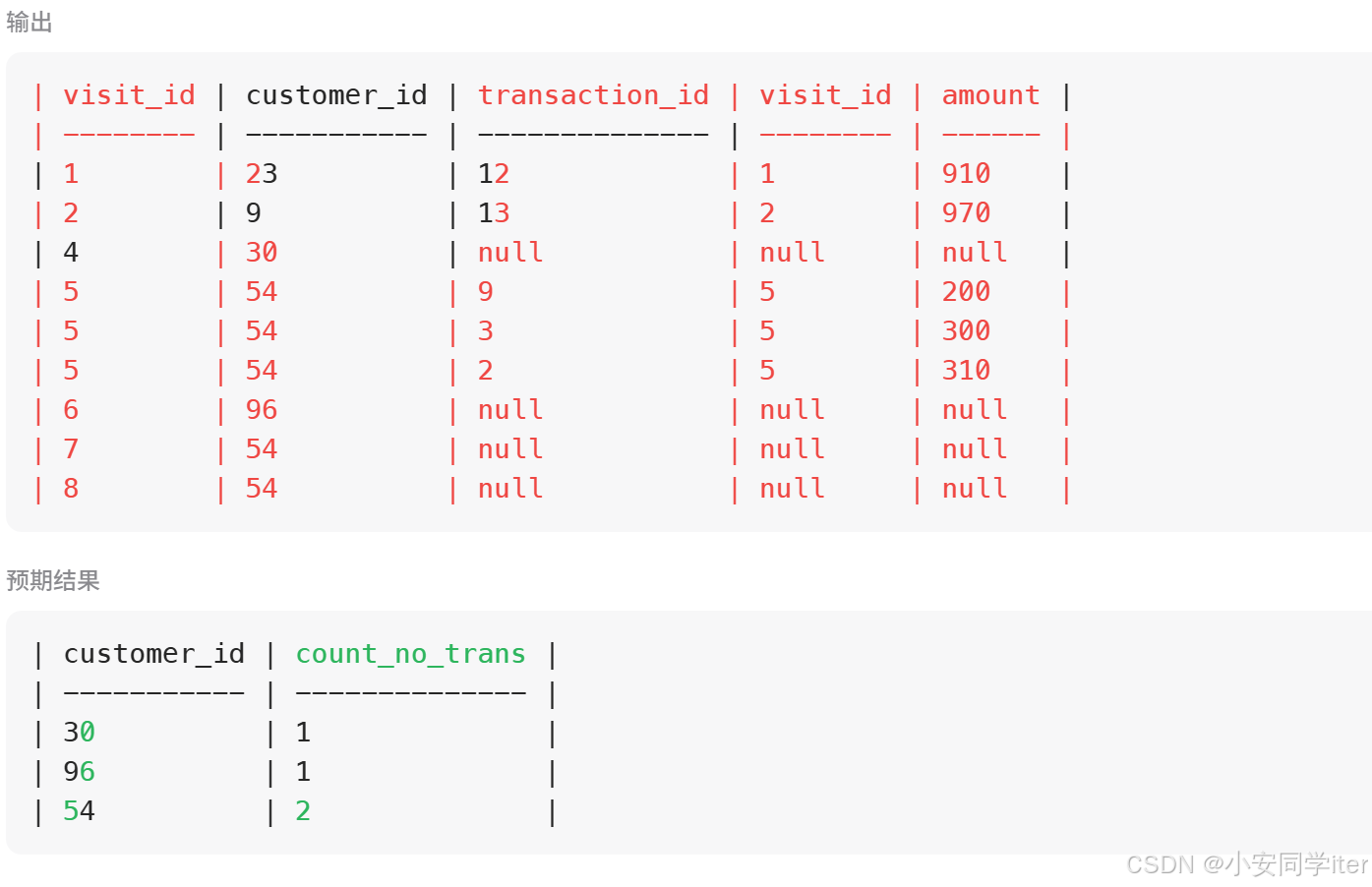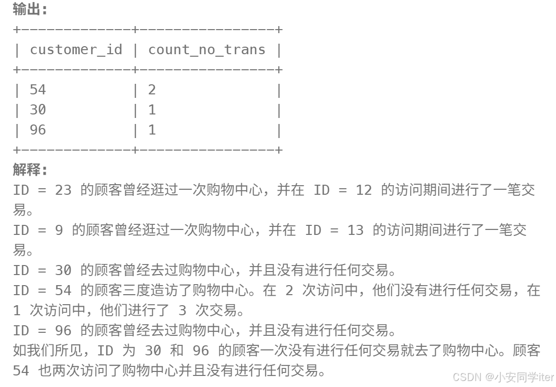 分析输出的结果,我们需要获取的就是这些transaction_id为null的,因为其是光看不买的那些,那就加上条件筛选呗,where transaction_id is null,然后结果如下