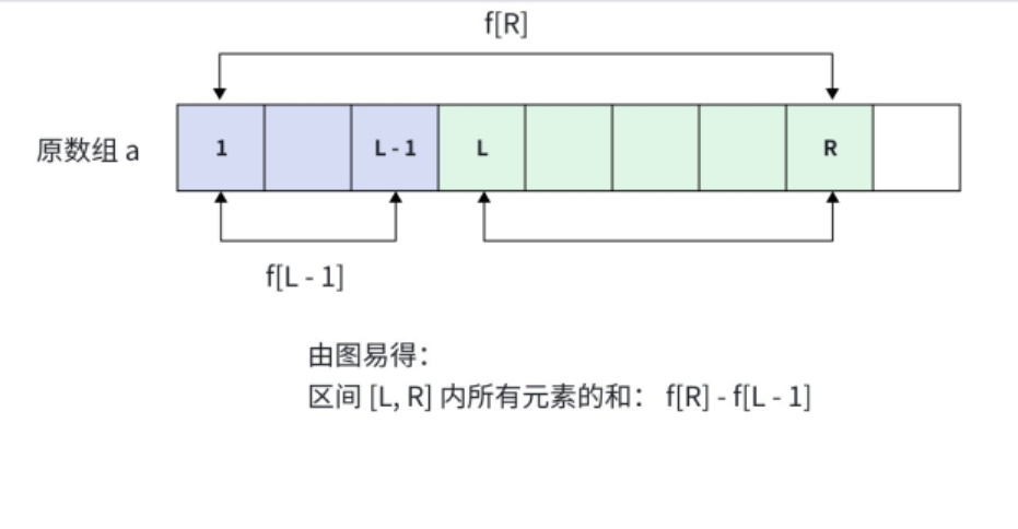 若要查询数组a从第l个元素到第r个元素的和(即a[l] + a[l+1] + ... + a[r]),根据前缀和的定义可推导:sum(l, r) = f[r] - f[l-1]