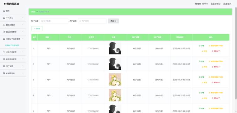 图5-1 问题帖子管理界面