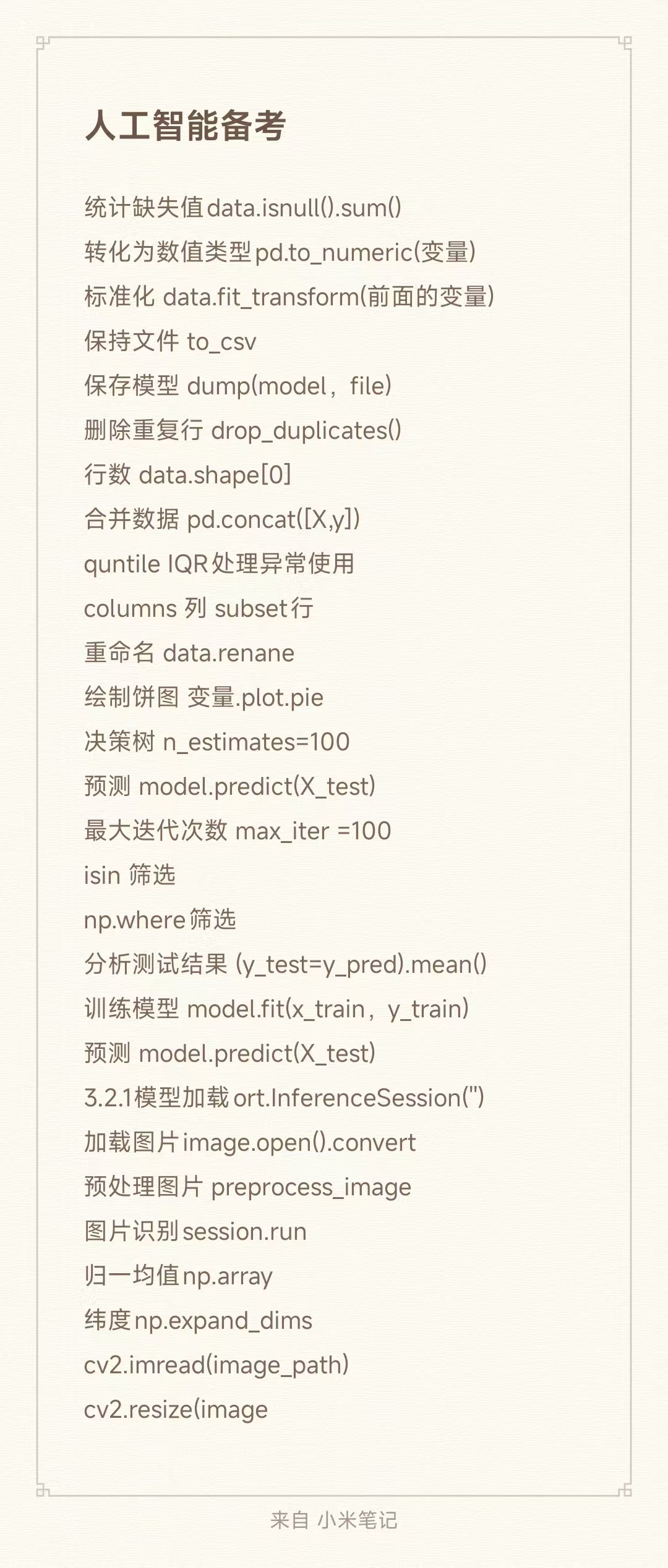 不过这次考人工智能训练师说实在实实在在准备的时间不到一个礼拜,线下的培训去了4次,四个半天,加上写博客和写题复习加起来不到每天1个小时-2个小时复习时间,因为平常出差加日常工作比较忙,实在是没什么精力放在这个上面,加上周末还有报名的成人本科的线下课和线上课,又喜欢偷懒睡懒觉,哈哈哈哈,最后昨天真的是没招了,抽了一天出来专门复习这个实操题,因为周五出差一天到晚上十点多才到家,又是一个躺平了,周六早上眯个懒觉到一点,爬起来就开始猛猛学,猛攻,从2点心无旁骛的学到晚上十一点,9个小时,基本上把实操题8种题型全部刷完了,学到了八分数,其实主要是其中函数的记背是主要问题,所以这边推荐像我一样短时间内将某一类题型反复刷,因为同类的题型是有共同之处的,刷的够多,你会有一定的心得的,我会后续慢慢整理到这个人工智能备考的板块内(但是不推荐像我这么极限,短时间全刷出来,总共4个板块,最少分4天吧按照正常节奏,然后每个板块需要理解+记忆,我最后是打印+把常用命令写了一下在去考试路上的两小时还在一直背和复习),就是昨天睡的太少了,就眯了一会,有点焦虑,感觉复习的不够