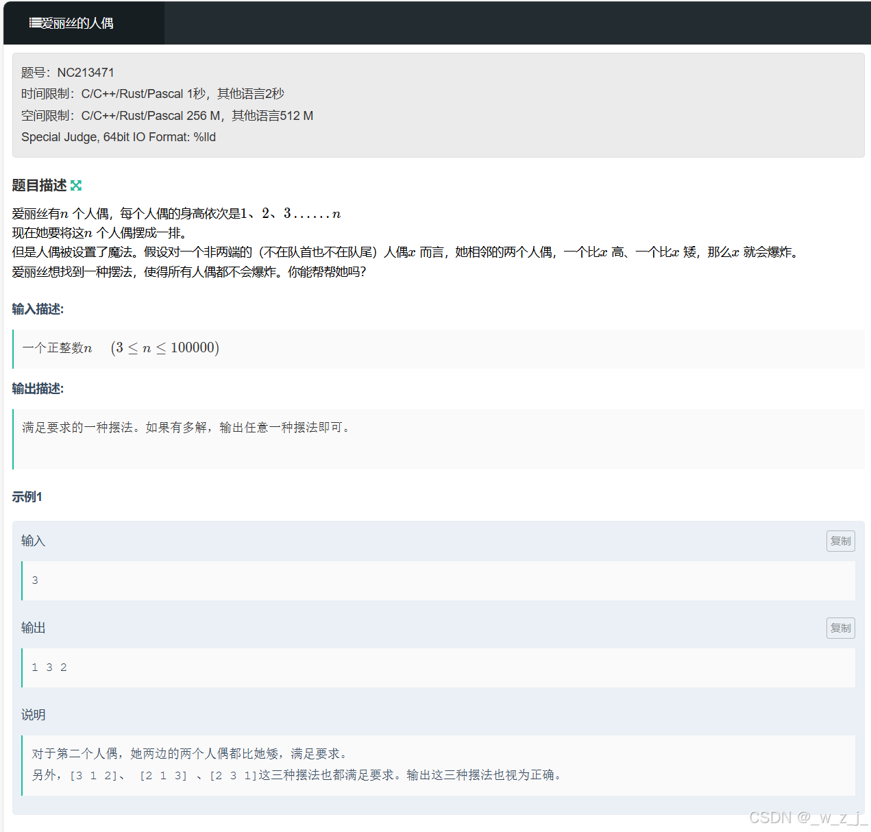 当前位置: 首页 > news >正文 爱丽丝的人偶 news 2025/11/10 8:42:09 这是一个典型的数学构造题,没有让你给出一个具体的解,基本上要考虑数学构造找规律。两边只能比自己小,或者比自己大。可以贪心找最小的放上,再贪心找最大的放上,直到放完。 查看全文 http://www.dtcms.com/a/589344.html 相关文章: 一个网站里面只放一个图片怎么做的交互式网站有哪些功能 永川区门户网站建设轨迹开发流程管理 web中间件——Nginx 读诗的时候我却使用了自己研发的Chrome元素截图插件 MyBatis框架如何处理字符串相等的判断条件 搭建网站需要程序WordPress中文替换布 【云运维】Python基础(一) 自己动手造轮子:用Requests和线程池构建一个轻量级高并发爬虫框架 养生网站策划成都行业网站建设那里好 网站设计 韩国做一个模板网站多少钱 【QT笔记】信号和槽 农村电子商务网站建设wordpress4.9.4 安装 【MATLAB第120期】基于MATLAB的SOBOL全局敏感性分析模型运用插件(含UI界面) 【Rust 探索之旅】Rust 核心特性完全指南:所有权、生命周期与模式匹配从入门到精通 2023年INS SCI2区,演化状态驱动的多群体合作粒子群算法用于复杂优化问题,深度解析+性能实测 淮北市网站制作公司网页设计怎么样 平面网站设计公司logo形象墙 AG32 系列MCU集成了CPLD,有何优势呢 37.关注推送 iis网站重定向设置微信公众号页面设计模板 Go的GRPC框架:Kitex 从Webpack迁移到Rspack 导购分享网站模板了解宿迁建设网站 基于springboot+vue的物流管理系统的设计与实现(源码+论文+部署+安装) (* IOB=“true“ *) 脚本复习--高精度空转(Xenium、CosMx)的细胞邻域分析(R版本) 单链表队列 阀门公司网站建设iis网站配置教程 基于PSO-BP神经网络的MMC子模块开路故障诊断与容错控制研究(含详细代码及仿真分析) Visual Studio 2022 手动搭建 PC 端 lvgl 的调试环境