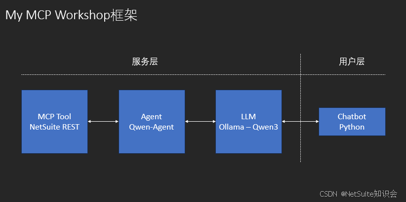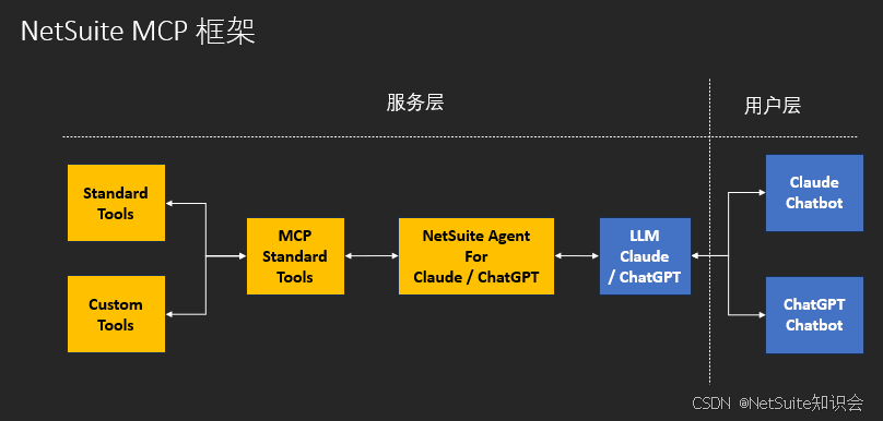 25.2发布的NetSuite AI Service技术框架只局限在Claude和ChatGPT上,对于我们中国用户是个限制。所以,我们将探索一条更为灵活的技术路线,能够将LLM与NetSuite数据源进行结合。