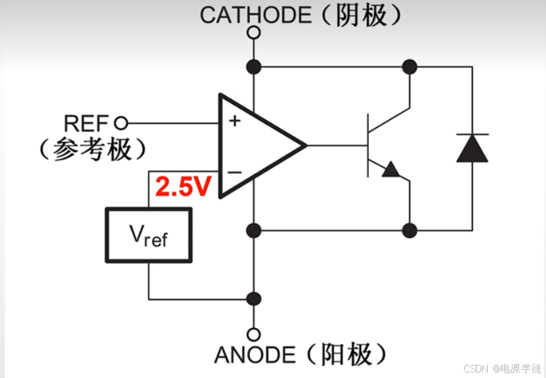 当参考极电压(Vref)高于 2.5V 时,误差放大器输出高电平,打开输出晶体管,阴极电流增大。