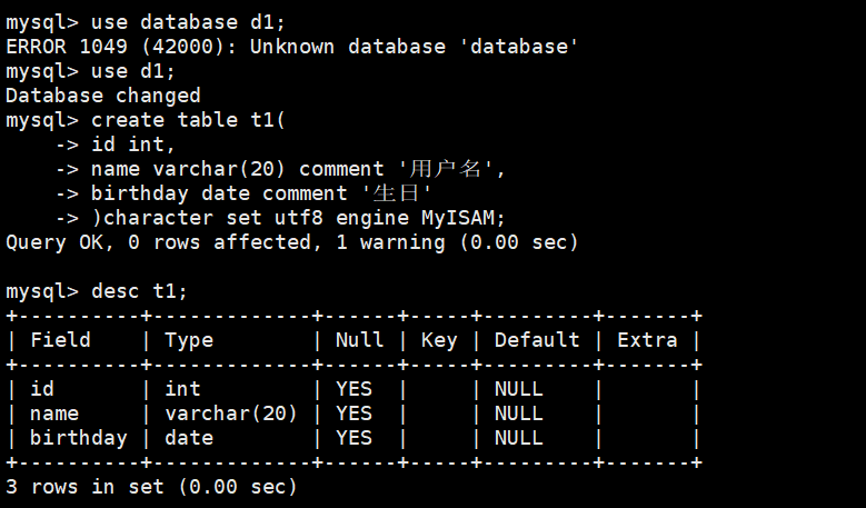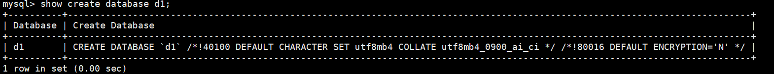 create database d2 charset=utf8;//创建一个使用utf8字符集的d2数据库