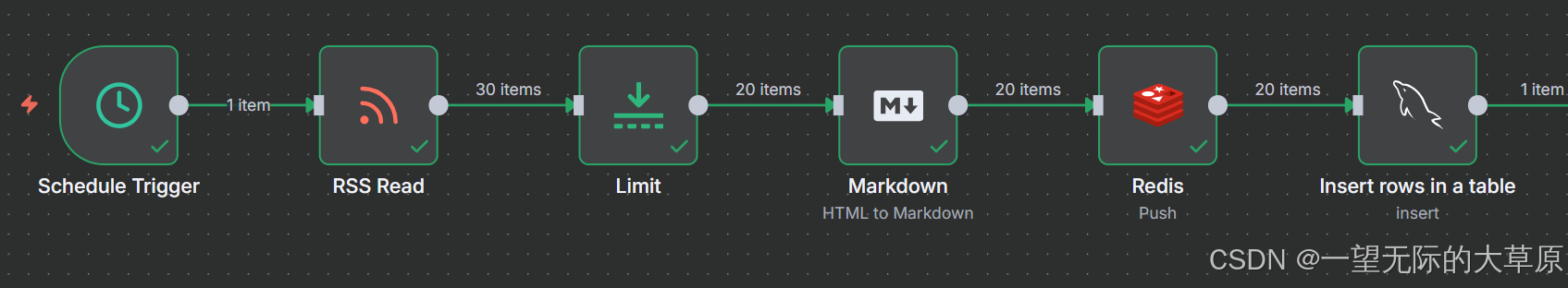 在AI飞速发展的今天,及时获取、筛选和管理最新的行业资讯对于开发者、研究人员和商业决策者至关重要。传统的资讯获取方式(如手动浏览各大网站、订阅邮件)效率低下,且不利于后续的数据分析和应用。本文将介绍一个强大的低代码自动化工具 n8n,如何结合 RSS 订阅,实现一个高效的、自动化的 AI 资讯采集和存储管理系统。我们将把解析后的内容分别存储到高性能缓存 Redis 和关系型数据库 MySQL 中,为后续的统一管理和深度分析打下坚实的基础。