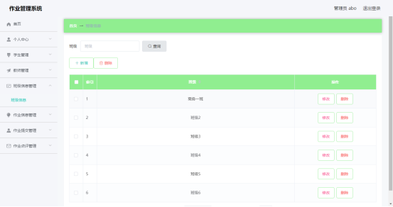 管理员可以对班级进行添加,查询,修改,删除操作。下图就是班级管理页面。