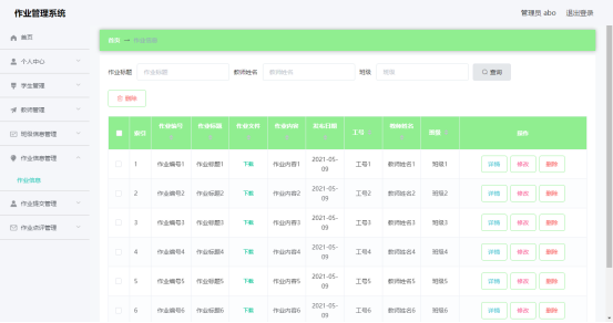 管理员可以对作业进行修改,删除操作。下图就是作业管理页面。