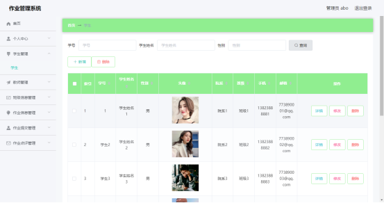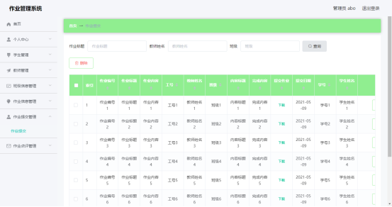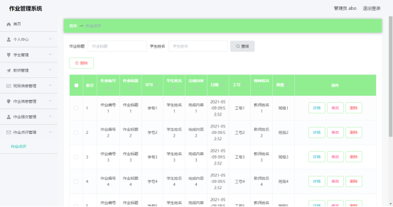管理员可以对作业提交进行添加,查询,修改,删除操作。下图就是作业提交管理页面。