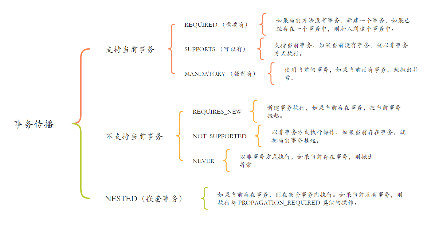 如果有事务 就加入当前事务 如果没有事务 就自己以非事务的方式执行