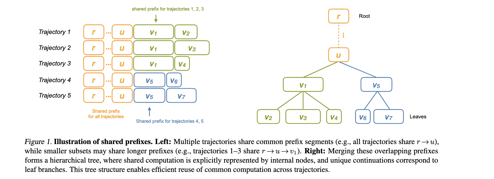 - 需要轨迹具有一定的共享前缀结构