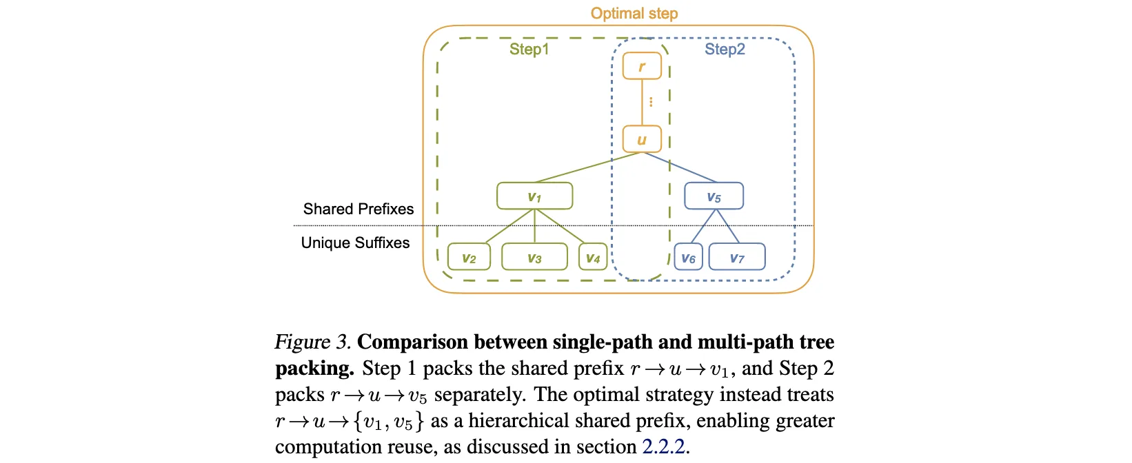- 计算重用:在前向传播中,对每个共享前缀只计算一次,将中间结果缓存