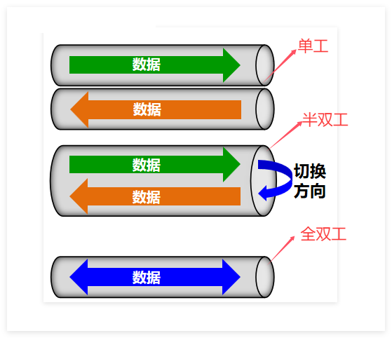双向交替通信(半双工通信):通信的双方都可以发送信息,但双方不能同时发送(当然也就不能同时接收)。