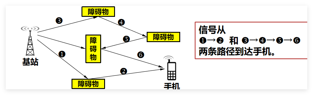 信号从多条路径按不同时间等到达接收方,多条路径的信号叠加后产生失真的现象。
