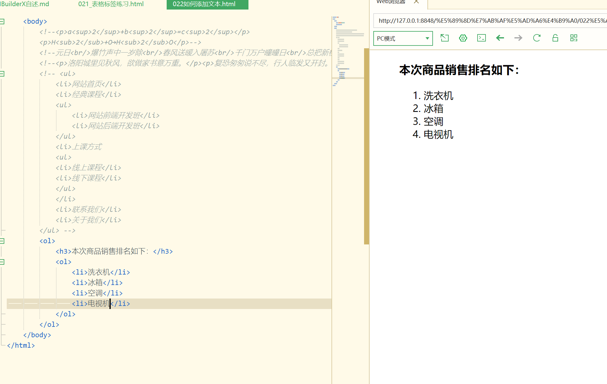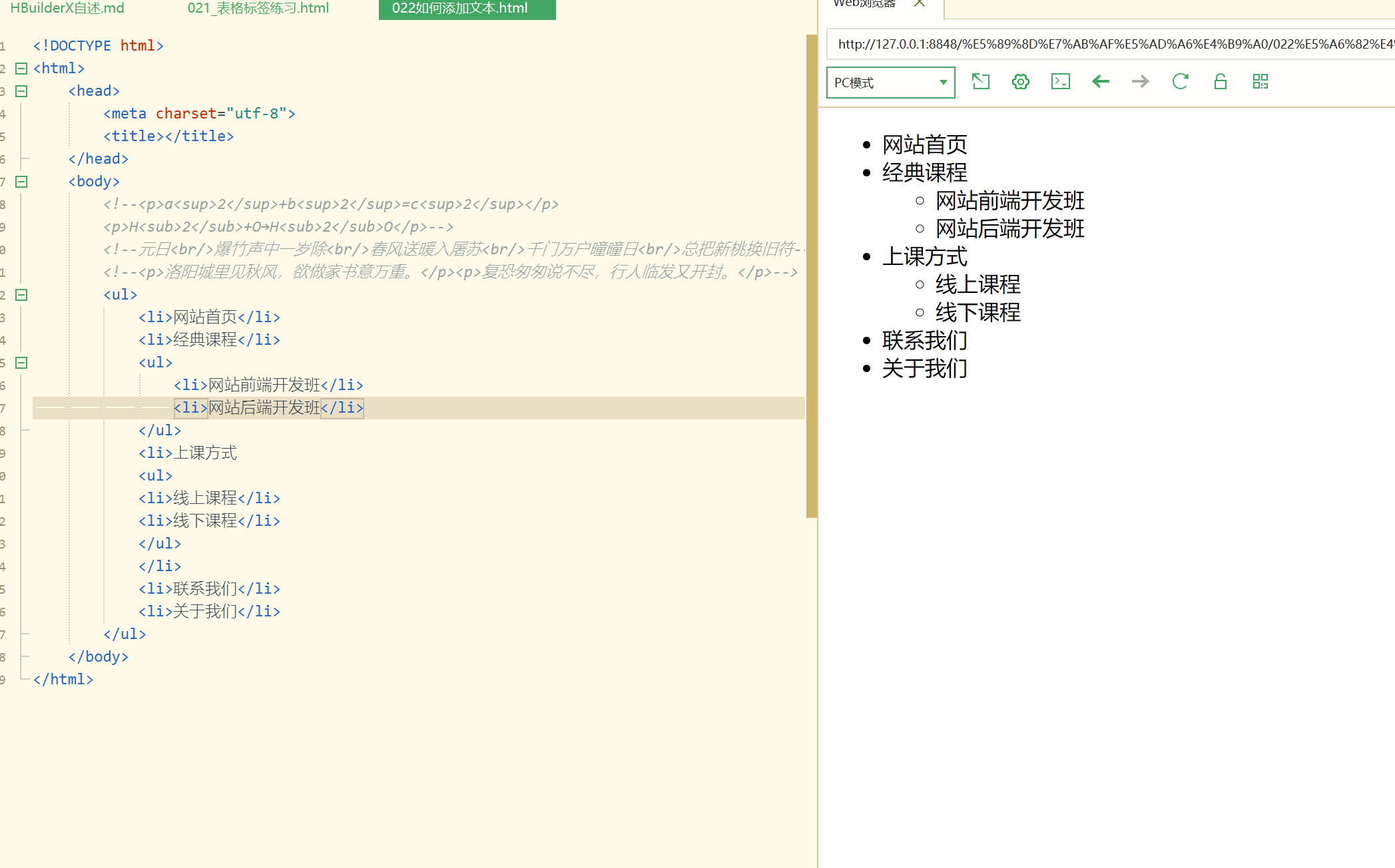 无序列表使用一对<ul<</ul>标签,其中每一个列表项使用一对<li></li>标签,结构如下: