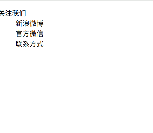 <body><dl><dt>关注我们</dt><dd>新浪微博</dd><dd>官方微信</dd><dd>联系方式</dd></dl></body>