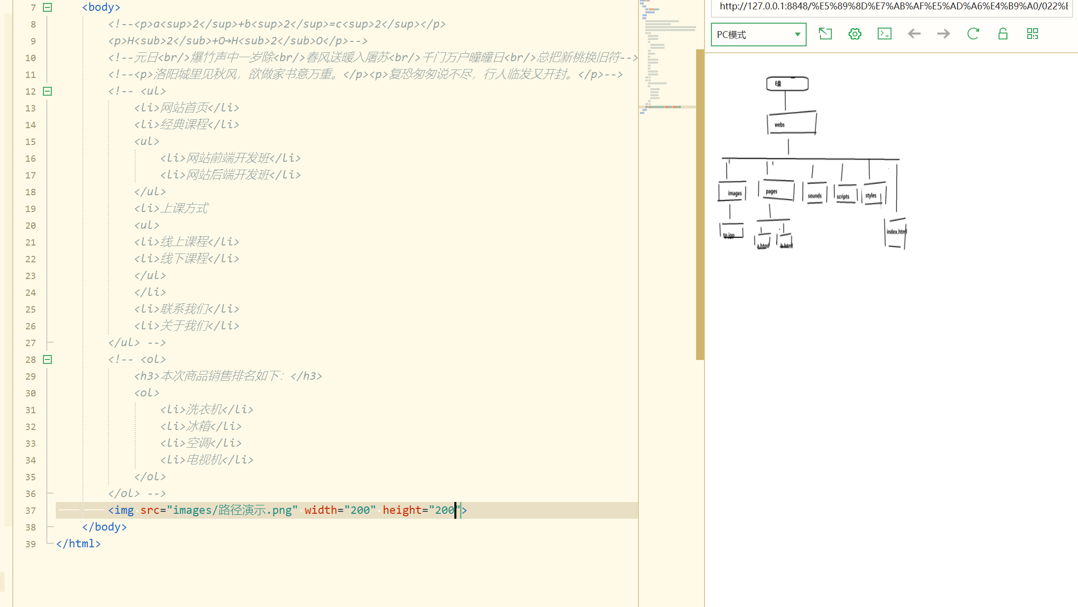 HTML文档支持文字、图片、声音、视频等媒体格式,但是在这些格式中,除了文本是写在HTML中的,其他都是嵌入式的,HTML文档只记录这些文件的路径。这些媒体信息能否正确显示,路径至关重要。