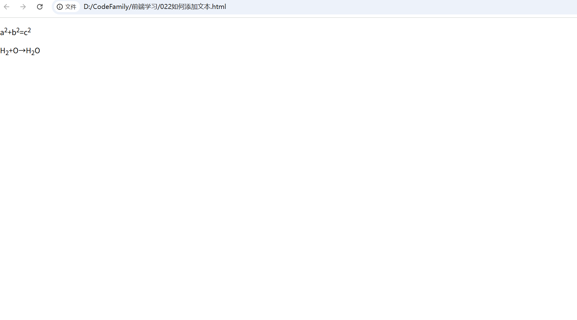 <html><head><meta charset="utf-8"><title></title></head><body><p>a<sup>2</sup>+b<sup>2</sup>=c<sup>2</sup></p><p>H<sub>2</sub>+O→H<sub>2</sub>O</p></body>