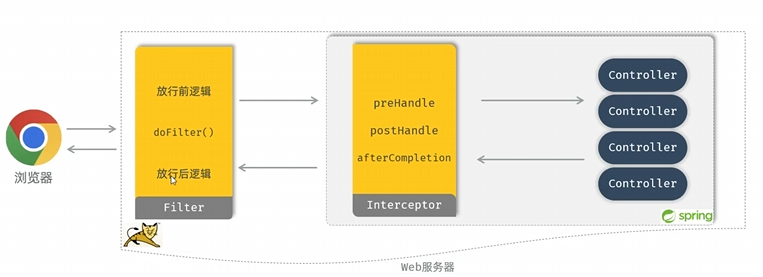 1. 接口规范不同:过滤器需要实现Filter接口,而拦截器需要实现HandlerInterceptor接口