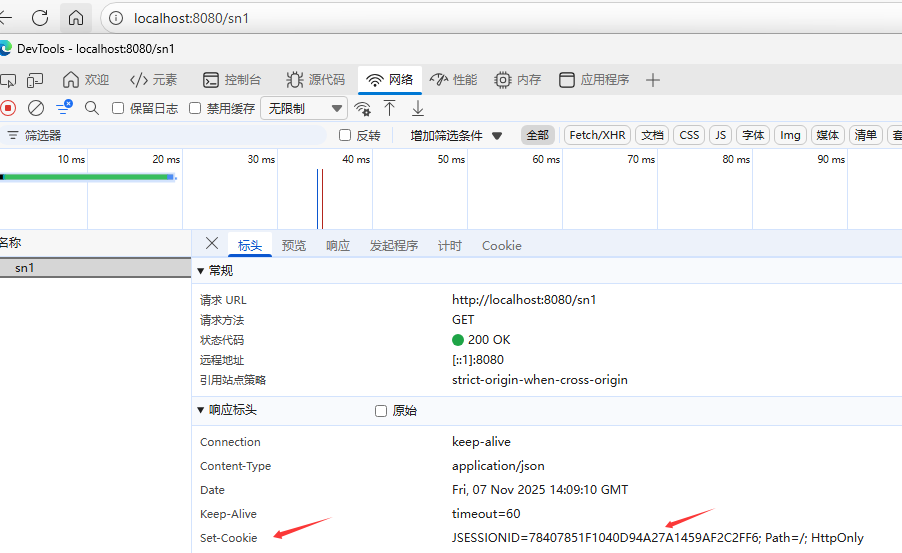 @GetMapping("/sn1")public Result session1(HttpSession session){log.info("HttpSession-s1: {}", session.hashCode());//往session中存储数据session.setAttribute("loginUser", "lizhuangzhuang");return Result.success();}@GetMapping("/sn2")public Result session2(HttpSession session){log.info("HttpSession-s2: {}", session.hashCode());//从session中获取数据Object loginUser = session.getAttribute("loginUser");log.info("loginUser: {}", loginUser);return Result.success(loginUser);}