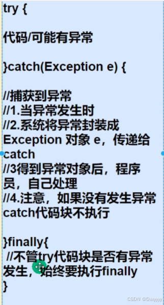 //如果程序员,认为一段代码可能出现异常/问题,可以使用try-catch异常处理机制来解决