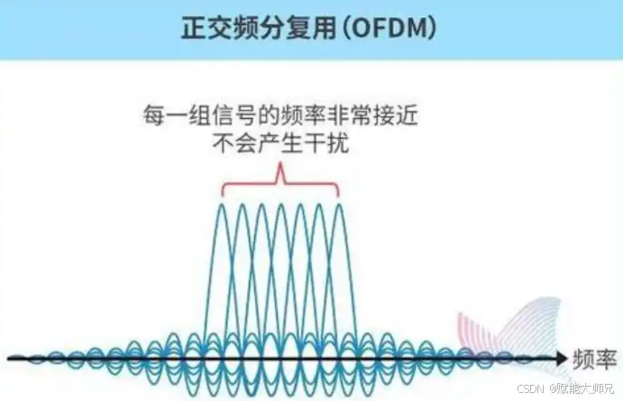 OFDM中的各个载波是相互正交的,这意味着它们之间的频谱可以重叠,但在接收端可以通过相关技术(如快速傅里叶变换FFT)将各个子载波上的信号分开,从而避免了子信道间的干扰。