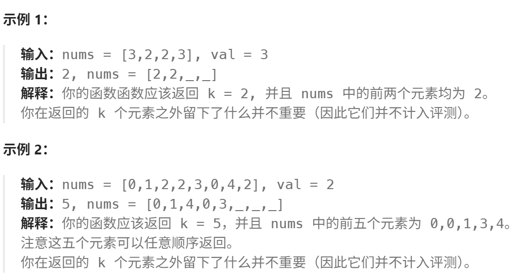 算法题一. 移除元素