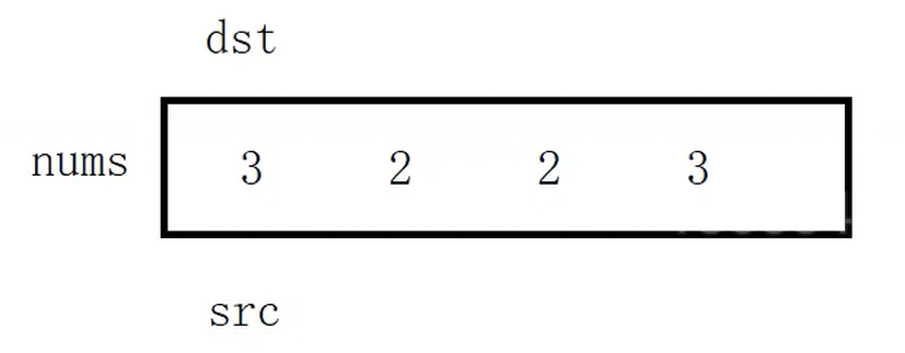 总之,src在前面探路,找非val值;dst在后面站岗,保存非val值。