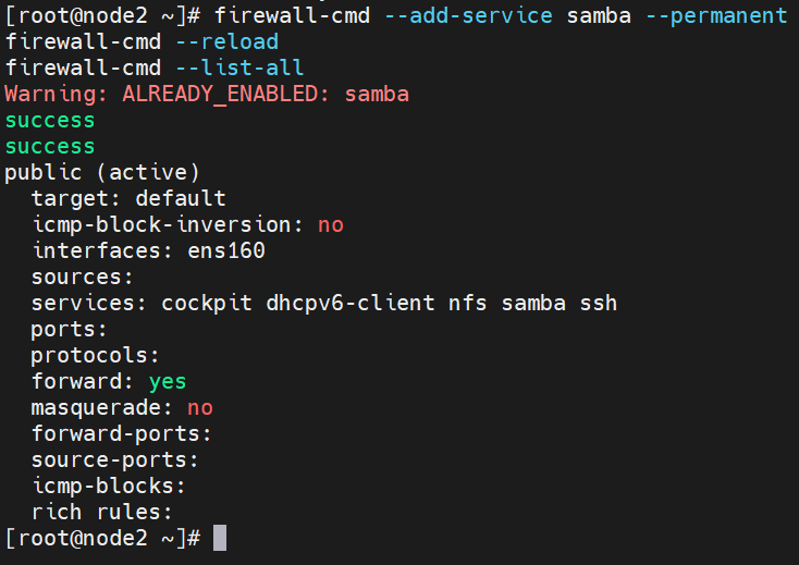 firewall-cmd --add-service samba --permanent firewall-cmd --reload firewall-cmd --list-all