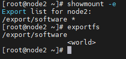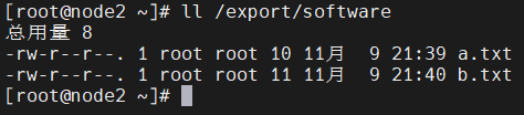 需求:在 node2服务器中的根目录下,有一个/export/software目录,该目录下存储了大量的软件包,由于各个服务器都需要解压使用,为了节省空间,需要将此目录共享出来,提供给各个服务器进行使用,同时也方便各个服务器放置共享的安装包。
