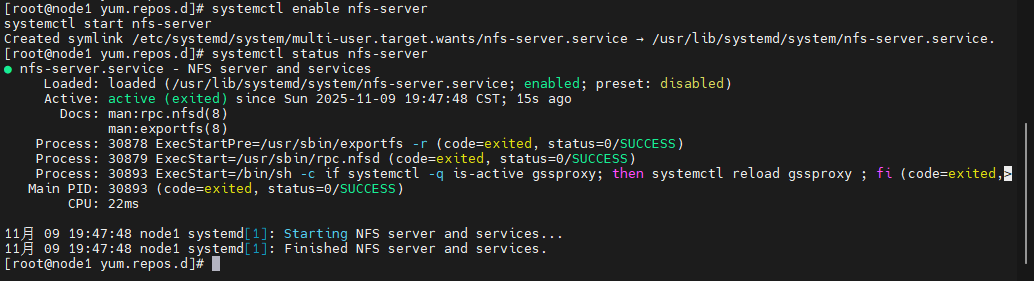 systemctl enable nfs-server systemctl start nfs-server systemctl status nfs-server
